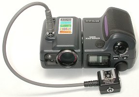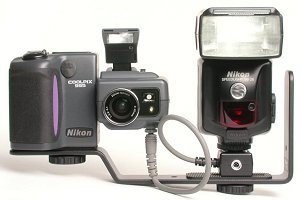 | Installing Coolpix 995 on the bracket | Installing Speedlight on the hot-shoe |