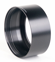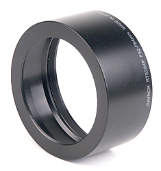 Raynox made a number of adapters for various cameras. Click here for the details. The one for Panasonic FZ-10 and FZ-20 is the RT5264P, from a female 64mm thread (the camera end) to a female 52mm thread (for converters and filters). This Raynox RT5264P is a very well-made and light adapter tube. The left image below shows its front, narrower (for 52mm thread) end, and the right one has the rear 64mm end. It seems two versions of the RT5264P are available. The other version, which is not shown here, has a slightly smaller top (i.e., the 52mm end); however, the functionality is exactly the same.
