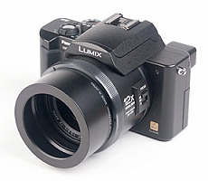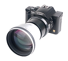 Like other tubes, when the adapter tube is mounted on a powered off FZ-10, the lens is deeply recessed as shown in the left image below. When the camera is powered on, the camera lens extends to right below the filter/lens thread of the adapter tube (below right). As a result, a mounted converter or filter can be very close to the camera lens. Because the camera lens does not extend while zooming, one can use a 52mm lens cap and/or protection filter permanently on the adapter tube. The thread size of 52mm is a very popular one.