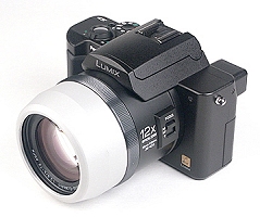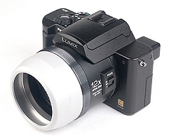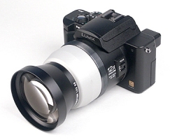 Actually, there are three Yoshida adapters of thread sizes 55mm, 58mm and 62mm. Click here for the details. Each of these adapter tubes is made from alloy and available in silver and black. The left image below shows a 55mm silver Yoshida adapter (part number 1055S). Like other tubes, when the adapter tube is mounted on a powered off FZ-10, the lens is deeply recessed as shown in the middle image below. When the camera is powered on, the camera lens extends to right below the filter/lens thread of the adapter tube (below right). As a result, a mounted converter or filter can be very close to the camera lens. Since the available thread sizes of the Yoshida adapters (i.e., 55mm, 58mm and 62mm) are the popular ones, one can easily find usable filters and converter lenses. Because the camera lens does not extend while zooming, one can use a lens cap and/or protection filter permanently on the adapter tube.
