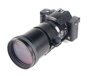 The LTZ10E is a 1.5X converter lens. Since its lens power is 1.5X, the LTZ10E brings the FZ-10 maximum focal length to 630mm = 420×1.5 (35mm equivalent). This telephoto converter lens does not have a front thread, and, as a result, it does not accept filters and lens hood.