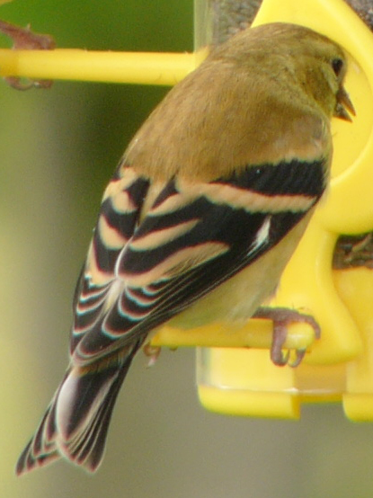 The left image below used fill flash with F4.0 and 1/60 sec. The focus area is the front end of the feeder, which is about 4 meters away. Since the feeder was swinging and the finches are moving, only the one shown in the right image below is the sharpest. It is easy to see the details and color rendition. Also note that chromatic aberration (e.g., purple fringes) is virtually not found. This illustrates the quality of the lens.