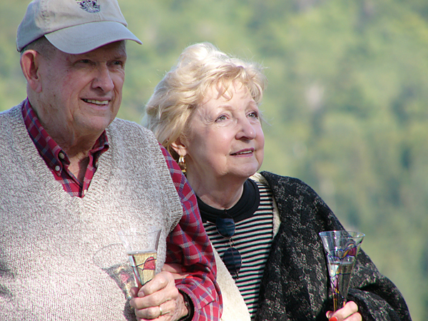The following image was taken while two couples were celebrating something at a tourist spot where I was doing my work. They cheered and drank champagne, and everyone shared their happiness. This is the first couple and the focus area is at the elegant lady's eyes. I did this shot while other people were trying to photograph that moment. The focus distance is about 10 meters away, or may be more.