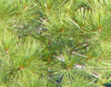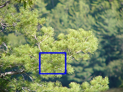 The left image below shows a tree about 20 meters away, and the right one is the 100% crop of the indicated blue area. Click on the image to see a 100% unprocessed image. As you can see, even at F2.8, the image sharpness of the combo is very impressive.