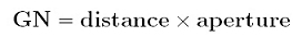 Each flash has its guide number, GN, for exposure calculation. The GN of a flash is defined at ISO 100 as the product of distance (i.e., flash to subject distance) and aperture: