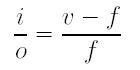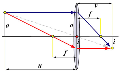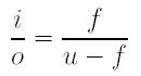 The following diagram shows the image formation of a simple (positive) lens. In the diagram, o and i are the subject size and image size, respectively, and u and v are the subject distance and image distance, respectively. Additionally, f is the focal length of the lens.