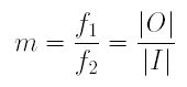 In the diagram above, the positive and negative lenses are denoted as L1 and L2, respectively. To the left of the left focal point of the positive lens at distance h is the real subject O, and somewhere in front of the negative lens is the image I of O. We shall use |O| and |I| to denote the lengths of real subject O and image I, respectively. The power m of this converter lens is defined as follows: