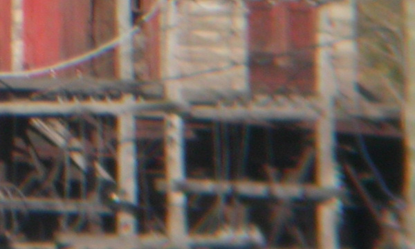The following three images are 100% crops of the lower-right corner. There is no doubt that the EagleEye is the winner. The definition of each power line can be seen very clearly, and chromatic aberration is very minimal. On the other hand, the Kenko 6X performs poorly with serious chromatic aberration. We have seen this on other pages that involve the Kenko 6X. It is difficult to compare the CrystalVue and EagleEye because they have different view angles. However, in this example, it appears that the CrystalVue is not as good as the EagleEye. While some textures can still be seen, they look soft and chromatic aberration and purple fringing appear in the corner although it is much better than the Kenko 6X.