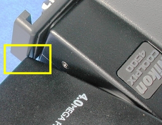 If you have used the 4500 on a tripod, perhaps you have learned that 4500's lens unit may be blocked by the tripod plate. The images below show the problem. The cause of this problem is the size of a tripod plate is likely larger than the distance between the lens unit and 4500's tripod hole. As a result, if you do not rotate the lens unit passing certain position before mounting the camera on a tripod, the lens unit will be blocked by the tripod plate. Similarly, you may also have problem to rotate the lens back to its normal position if the camera is on a tripod or has a quick release plate attached. This is a minor but very annoying problem.