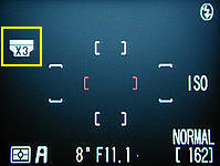 shooting mode immediately and a lens converter icon appears