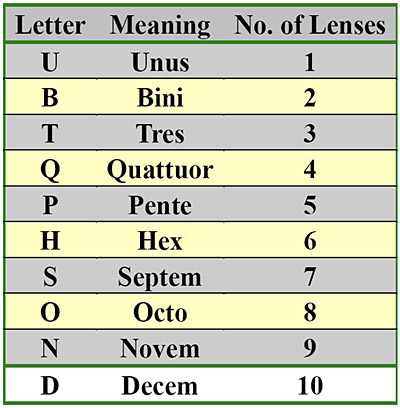 Each of the non-zoom lenses announced in 1959 has a letter appended to Nikkor-. This letter indicates the number of glass elements used in the lens construction as shown in the table below. Therefore, Nikkor-T 10.5cm f/4 means this lens uses three glass elements, a very typical Triplet design.