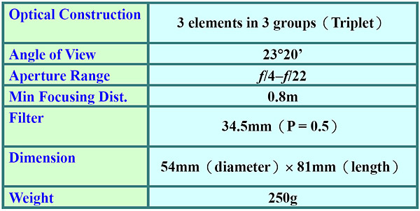The left image below has the inner front rim. It shows that this lens has three glass elements and focal length of 10.5cm with maximum aperture f/4. The right image below shows the aperture range being f/4 to f/22.